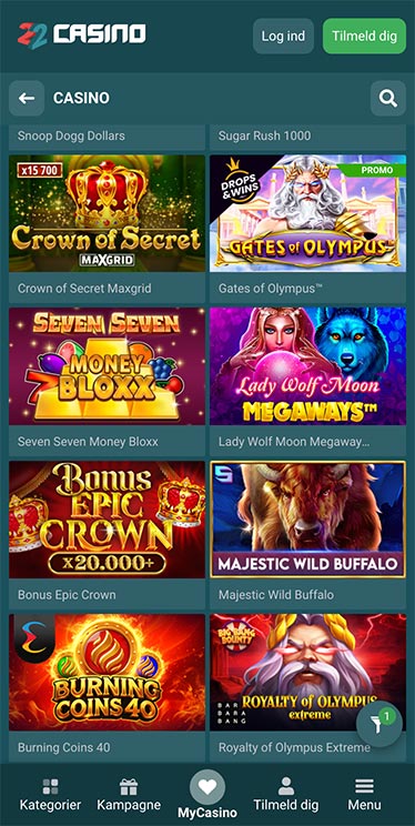 22Casinos touch-grænseflade er veloptimeret. Menupunkterne tilpasser sig automatisk skærmstørrelsen, og platformen kører problemfrit, uanset om du blot browser i casinoet eller spiller forskellige spil. Derudover møder mobilbrugere ingen reelle begrænsninger eller kompromiser. Du er hverken begrænset i spiludvalget eller i adgangen til kampagner, blot fordi du spiller på en mobilenhed. Den gnidningsløse overgang mellem desktop og mobil er uden tvivl en af 22Casinos største styrker.