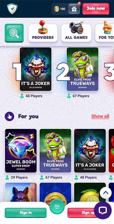 - Skærmstørrelsen er vigtig. På små telefoner er der meget rulning og mange kampagnekort. På større telefoner og tablets føles spil-/udbydersøgningen mindre overfyldt.